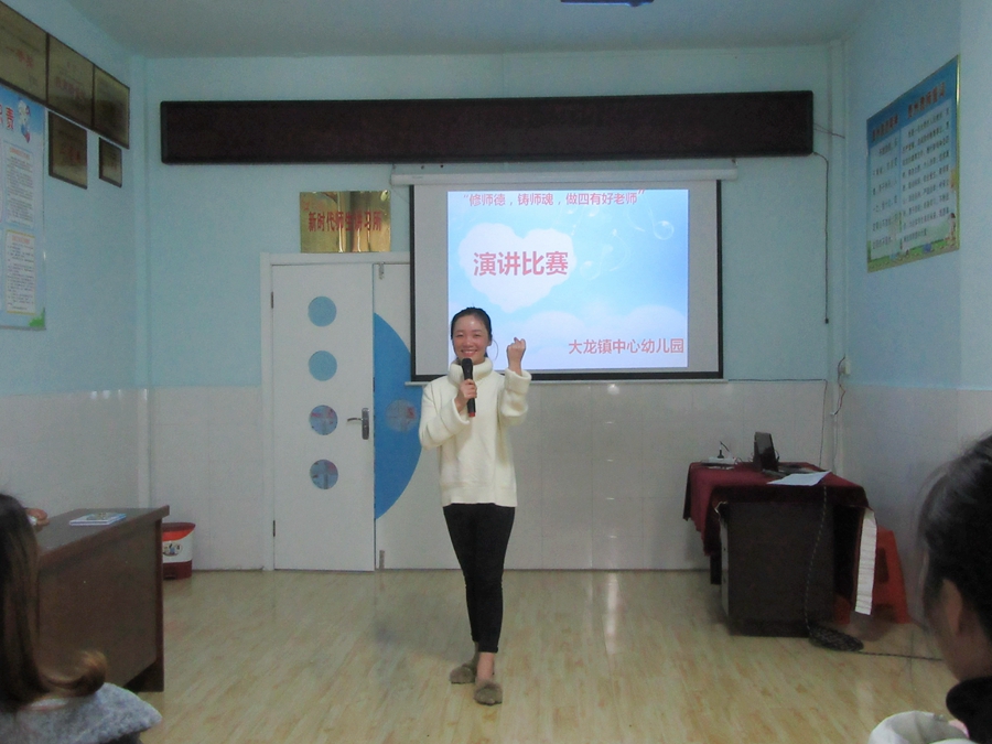 为加强教师队伍建设,提高教师自身修养,弘扬新风正气,树立教师形象,大龙镇中心幼儿园12月18日,开展了“修师德,铸师魂,做四有好老师”演讲活动。