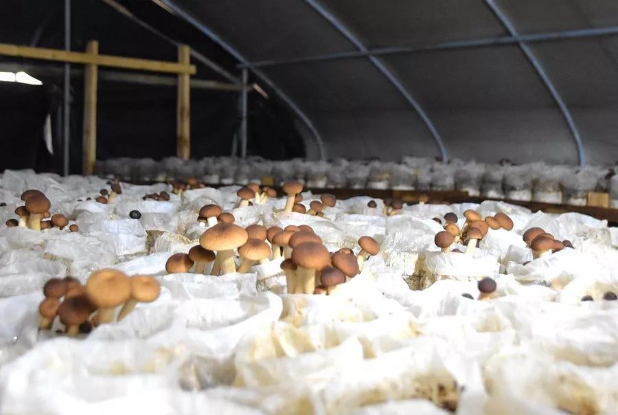 “村里这个产业真的好,平时在这里管护既学到技术又有工资拿。食用菌产业从投入到产出,周期短、收效快,只要用心学、专心做,收入还是有保障的。”村民刘七妹承包了5个棚,在她的精心管护下,大棚里茶树菇长势非常好,“我已经一个多月没回家了,天天吃住都在棚里。没有付出哪里有收获?”