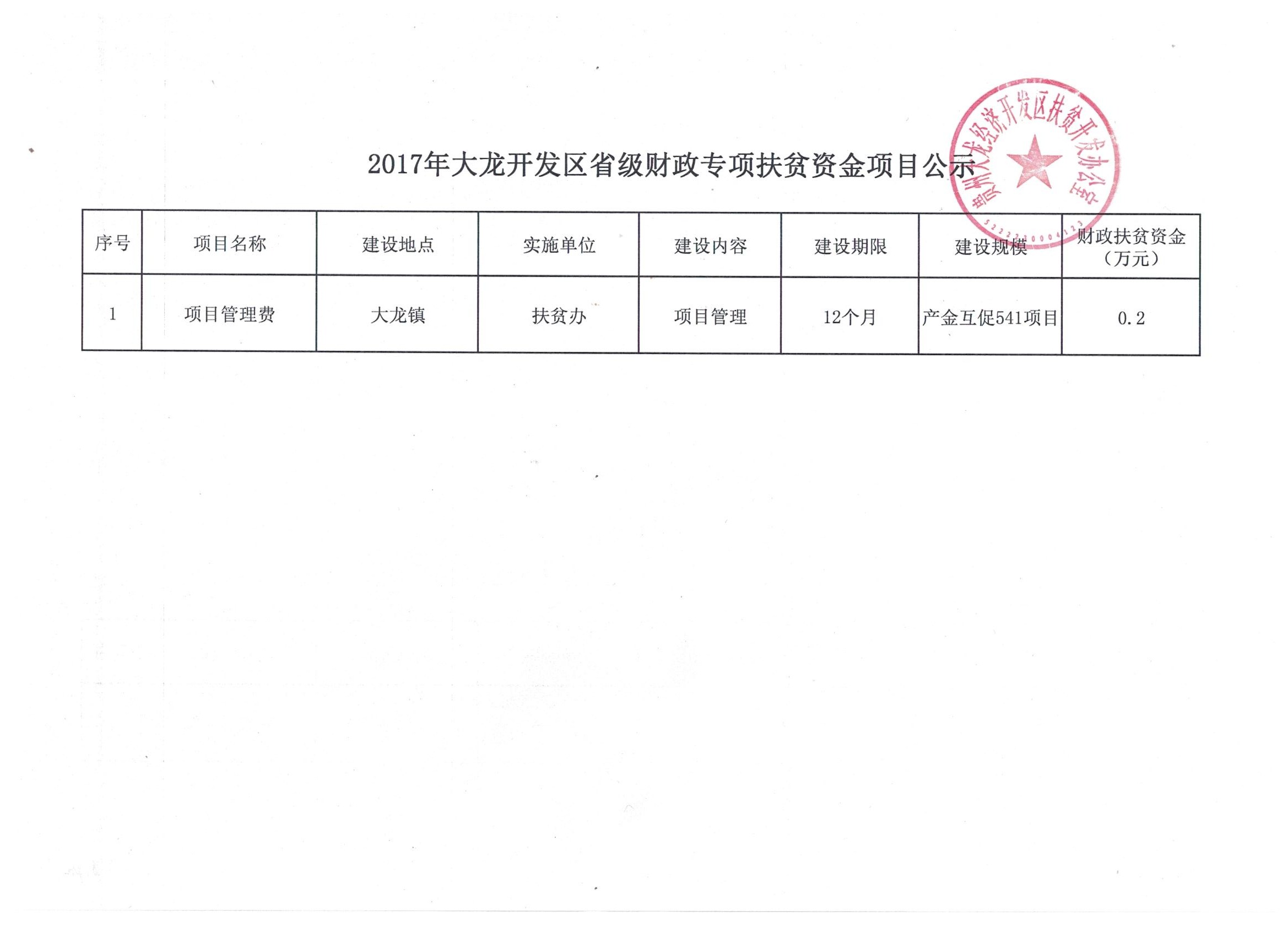 2017年大龙开发区省级财政专项扶贫资金项目公示