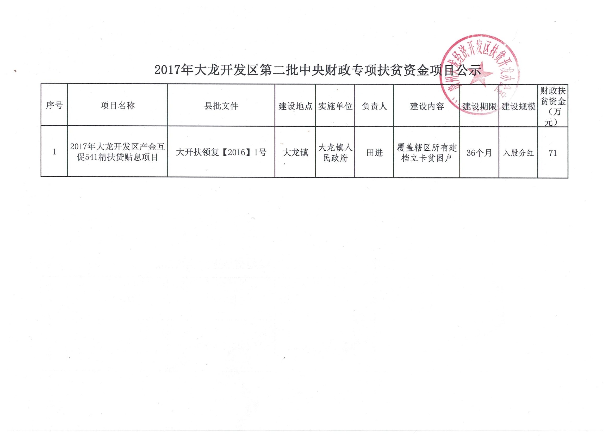 2017年大龙开发区第二批中央财政专项扶贫资金项目公示