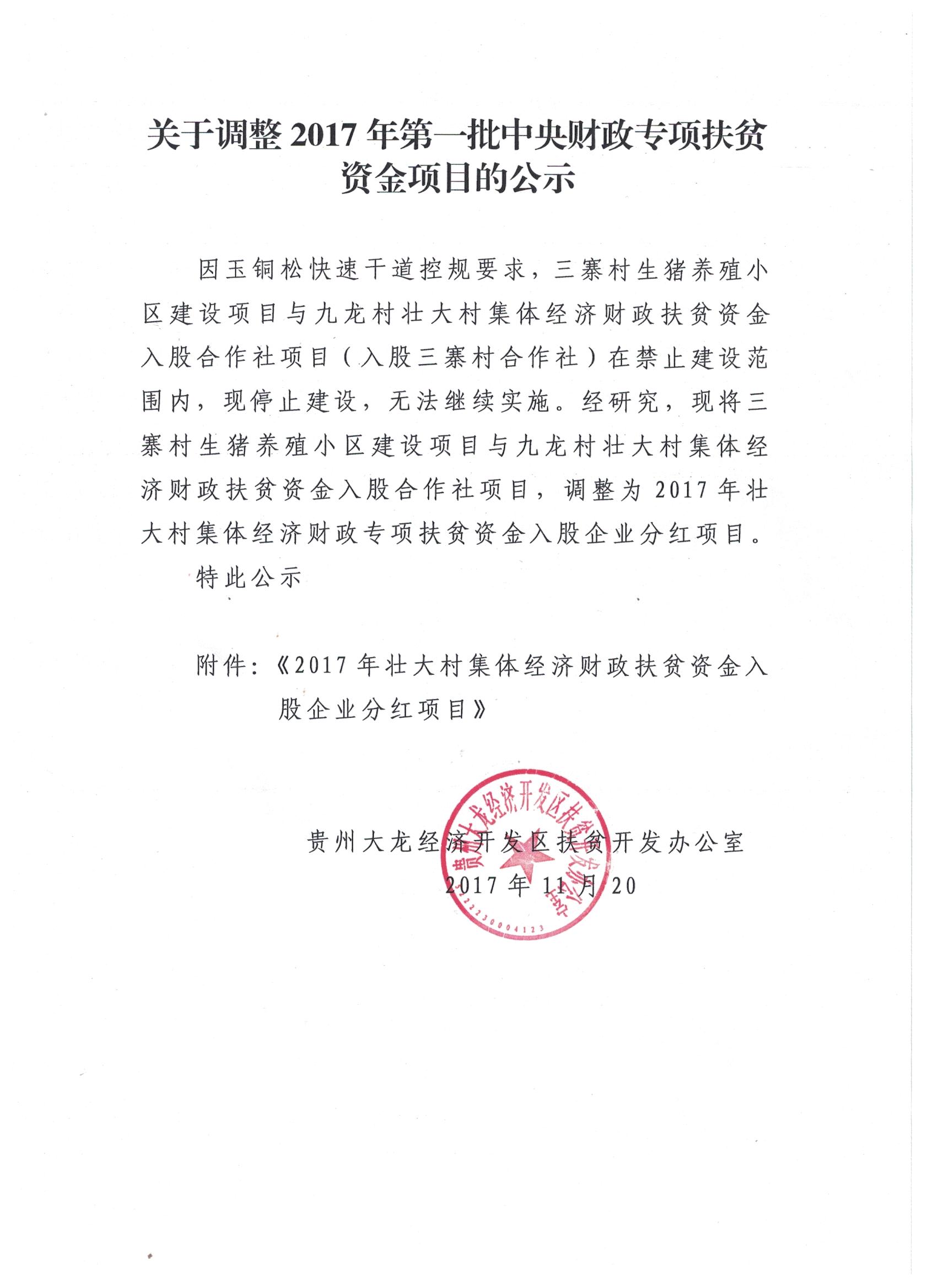 关于调整2017年第一批中央财政专项扶贫资金项目的公示