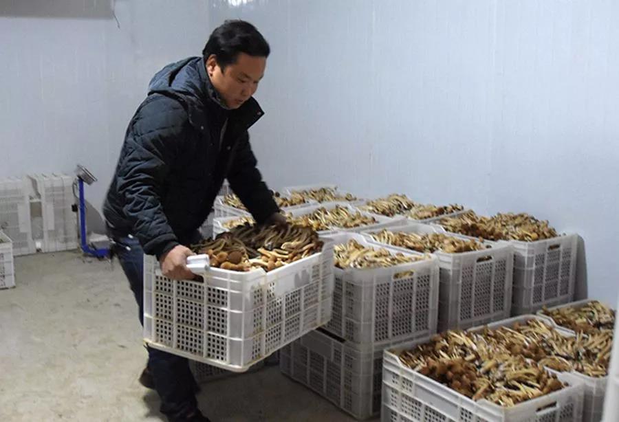 姚益把菌子搬到冷库保鲜